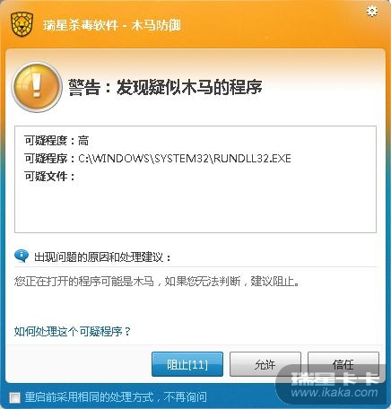 今天用诺基亚PC套件安装程序,瑞星一直弹出这个报警。