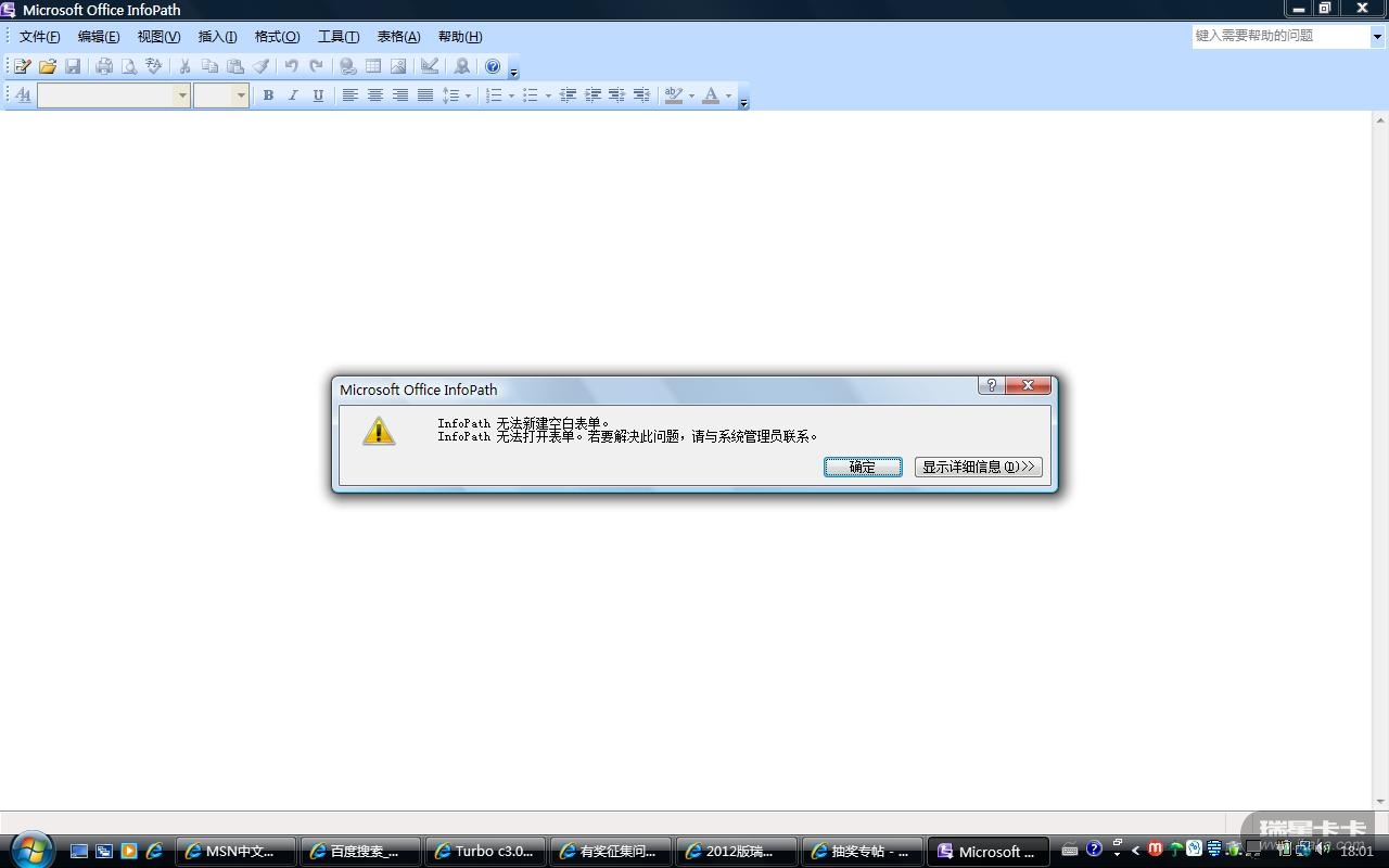 开启瑞星杀毒软件2012时,Microsoft Office2007 Infopath模版打不开,出现“表单模板: urn:schemas-microsoft-com:office:infopath:oob:Sample-Travel-Request:2052拒绝访问。”的提示,而关闭瑞星2012杀毒软件后,就能正常打开。怎么解决?