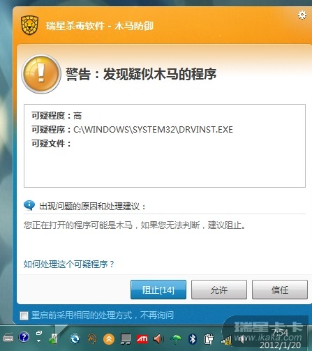 插入无线键鼠发射器安装驱动时,疑似木马报警