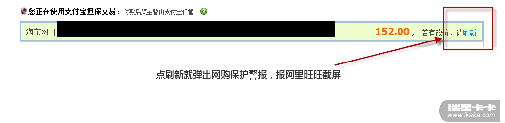 另外,在付款页面时,先不付款,将IE窗口全部关闭,再从旺旺的淘助手里 选择去付款,再点刷新时也会出现这种状况