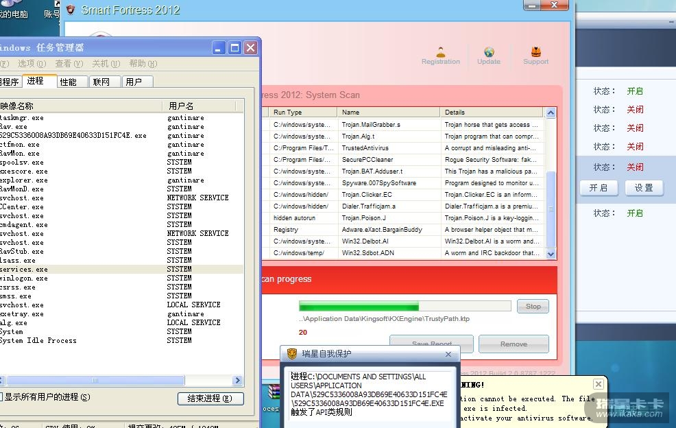 在瑞星2008下无法关闭瑞星杀软,触发自保