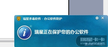 打开WPS Office 个人版中的wps文字等软件后,瑞星没有弹出“办公软件防护”提示(如图),