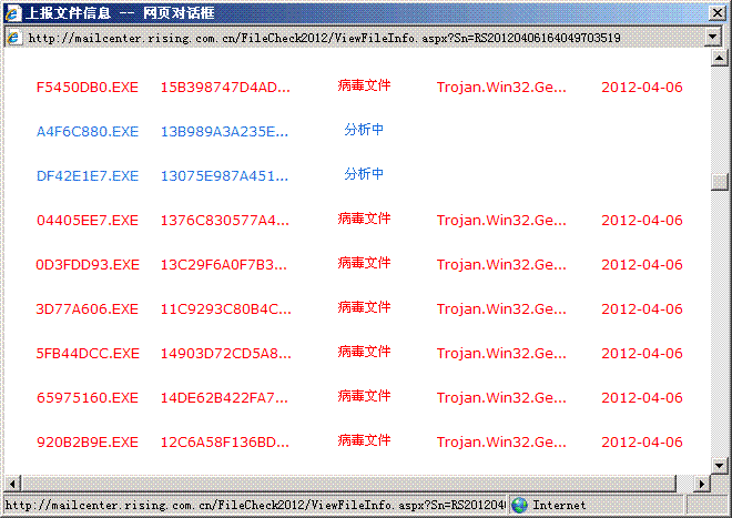 2012年3月31日晚上传的未报的可疑文件,4月1日已经处理大部分了,不错。加油!