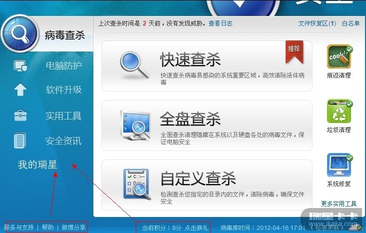 希望增加“我的瑞星”项目,把积分什么的移到"我的瑞星"中