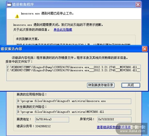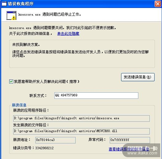 瑞星已有收集报错工具。