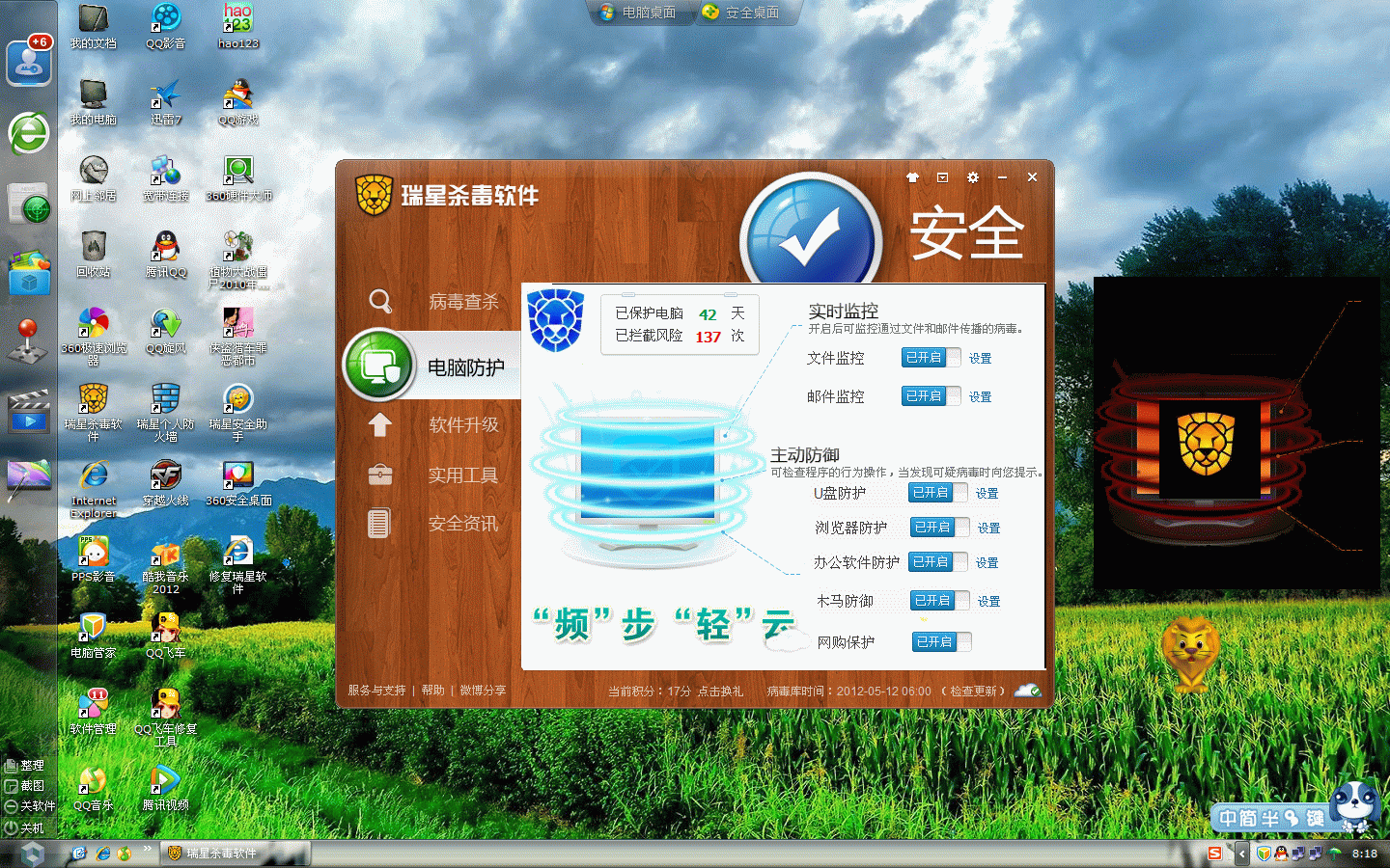 昨天设置了一张瑞星2012的ui,今天没事情做,又设置了一张,设置不合理的地方大家多多指教!谢谢!