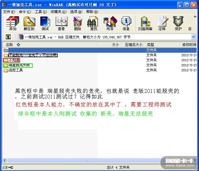 结果:一部分是一些老壳 ,但瑞星脱壳失败 ----太不应该啊;一部分,瑞星无法脱壳----是些新壳 ;第二部分是本人测试能力有限,需工程师确认的;最后一部分是远控!!!