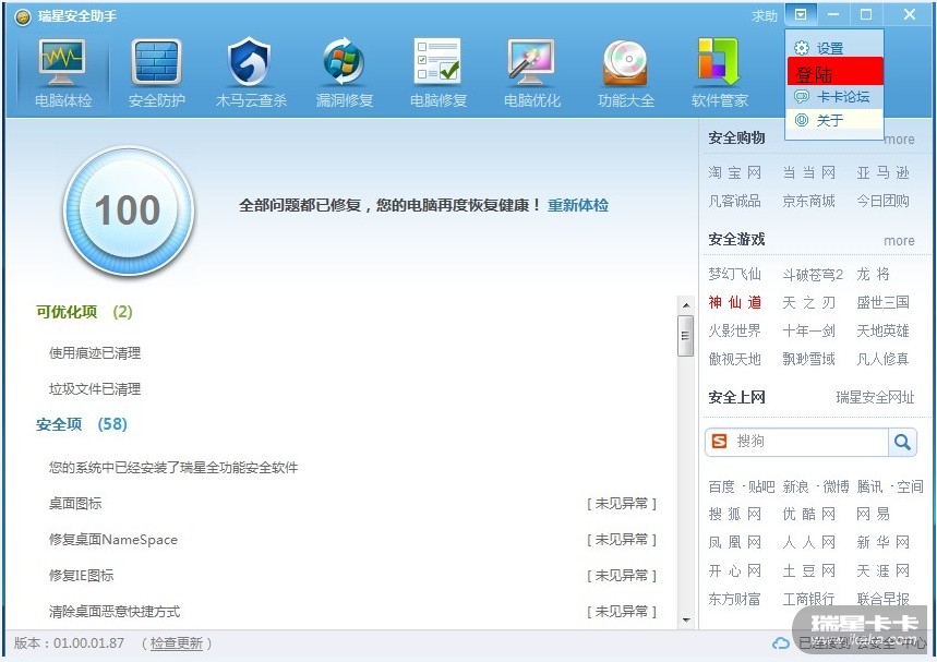 瑞星安全助手增加账号登录功能的建议已经收集。