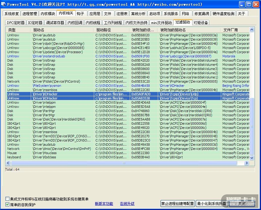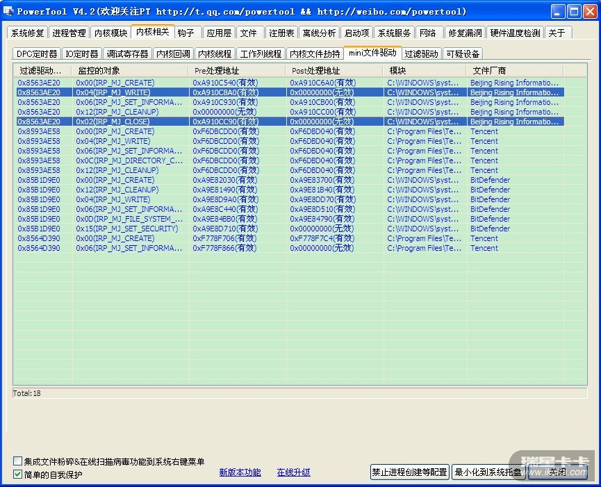 在过滤驱动方面 , 瑞星也不多啊!!!