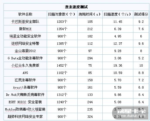 基数本来就不一样有900的有1000多的,各家杀软对查杀病毒数的计算方法不一样所以它这个测试结果咋算出来的也不知道。另外看扫描速率瑞星也不是最慢的,趋势才2.78个/s。