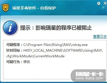 但是你有没有发现,瑞星自我保护阻止了自己?