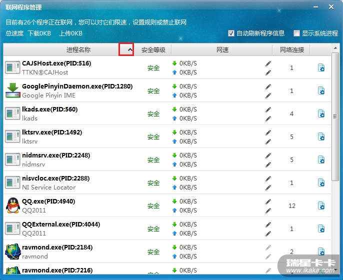 联网程序管理排序进程消失的问题已解决。感谢您参与公测活动!