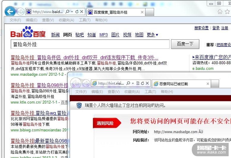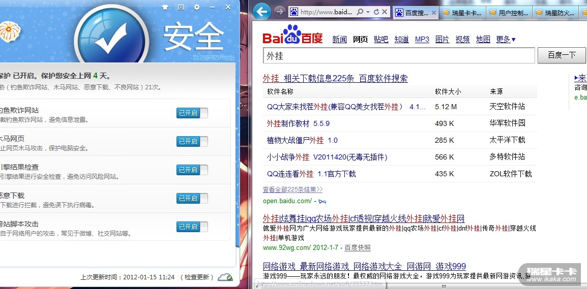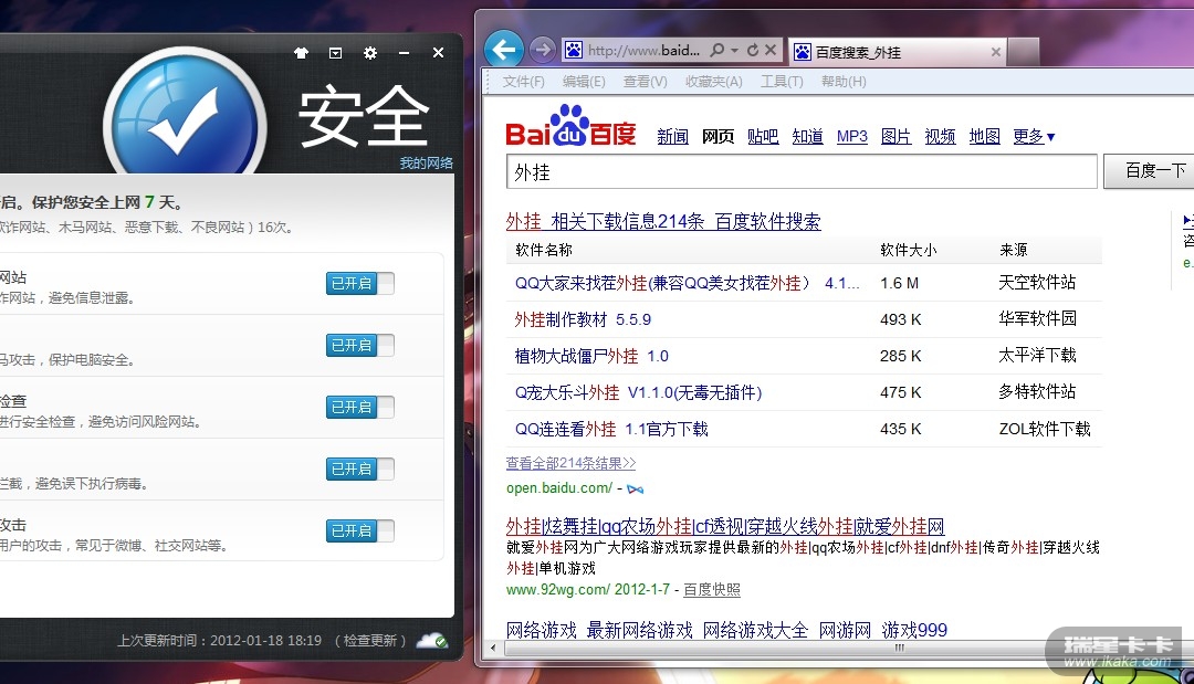 2012版的搜索引擎防护,只有在检测到危险链接的时候才会看到提示图标,安全链接不再提示。
