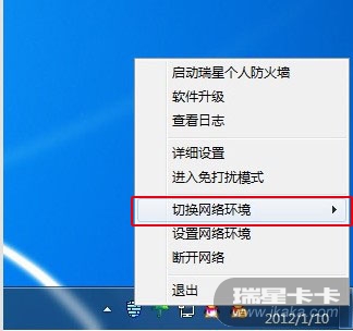 鼠标点击系统托盘处的防火墙中的“切换网络环境”时,没有子菜单弹出,无法切换网络环境,