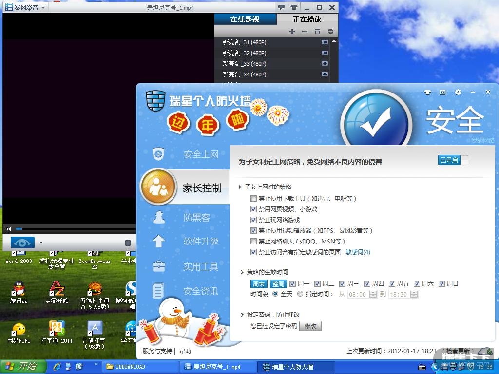 回复: 2012瑞星防火墙:家长控制—禁止使用播放软件如暴风影音等:无效