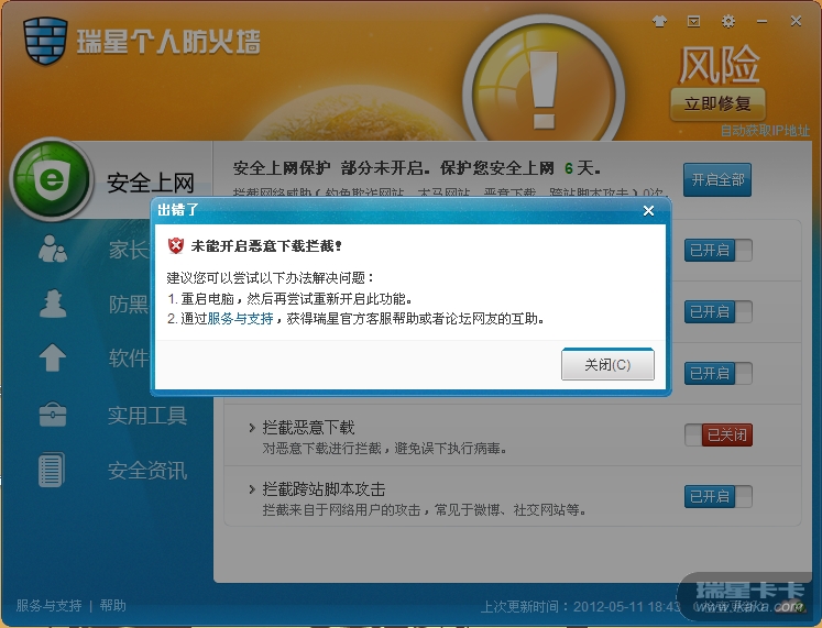 这是bug么?瑞星墙防护阻止浏览器访问网络