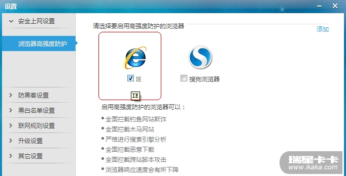 我在“浏览器高强度防护”中开了IE的防护,没有在“防黑客”中开启高强度拦截