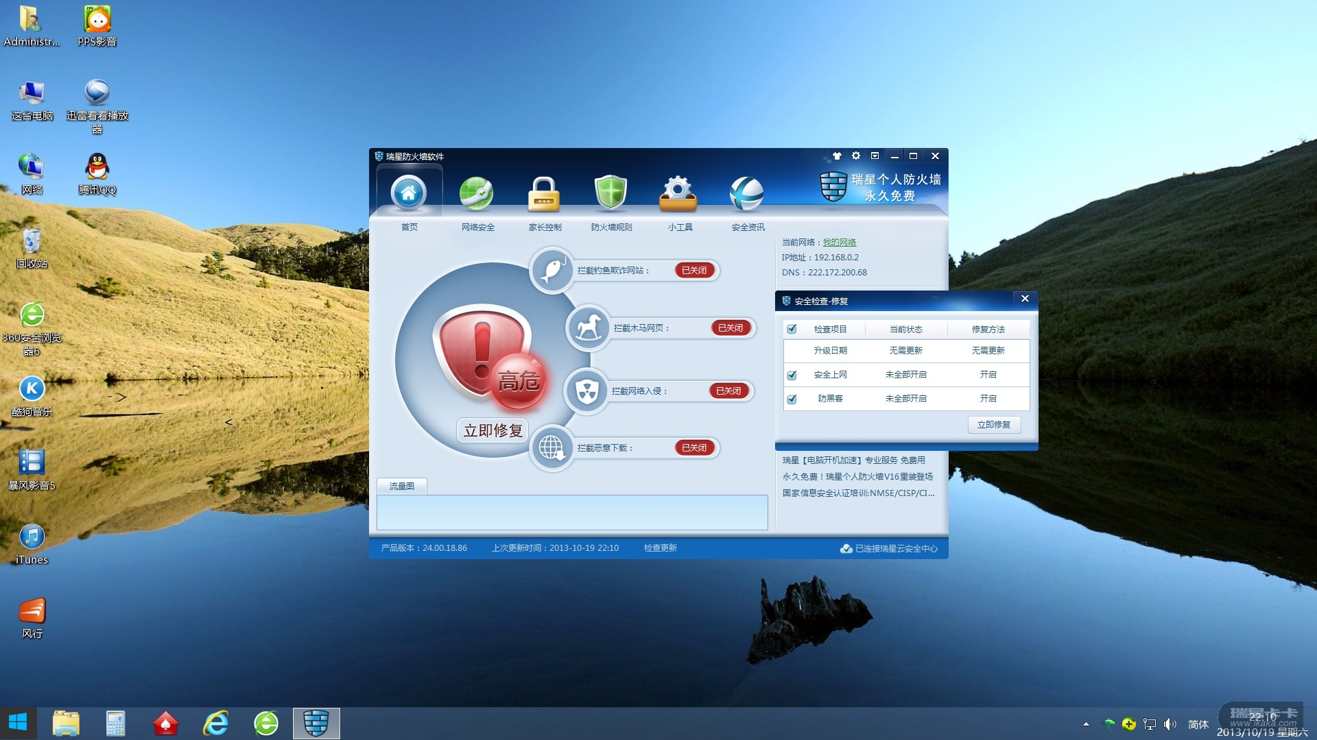 升级WIN8.1 后,已将系统里防火墙卸载,卸载之后重启,到瑞星网站下载新的安装包,重新安装升级到最新版,问题依旧,不能修复高危提示项目,点立即修复没有反应,不能修复。