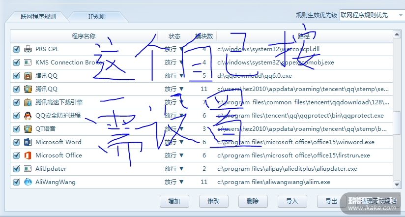 4、在联网程序规则中把你需要联网的程序添加进去设置成允许。
