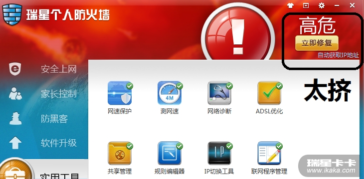 1.界面中“IP切换工具”显示IP类型的文字与“安全”等级别文字离得太近,很挤,建议将其转移到别处。