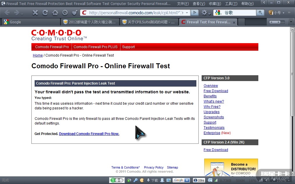 CPILSuite是COMODO一款老的泄露测试工具,现在5.9墙直接云杀了...
