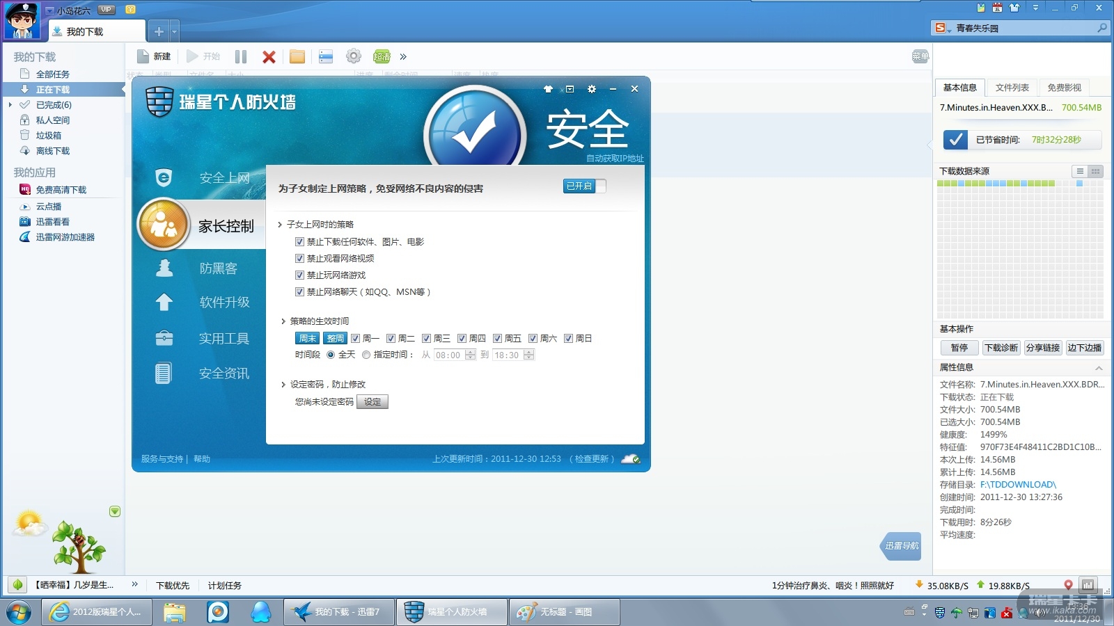 先不论迅雷的下载速度快慢,打开家长控制后,迅雷的下载仍然在进行中