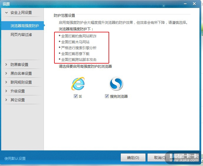瑞星防火墙中的“浏览器高强度防护”的建议