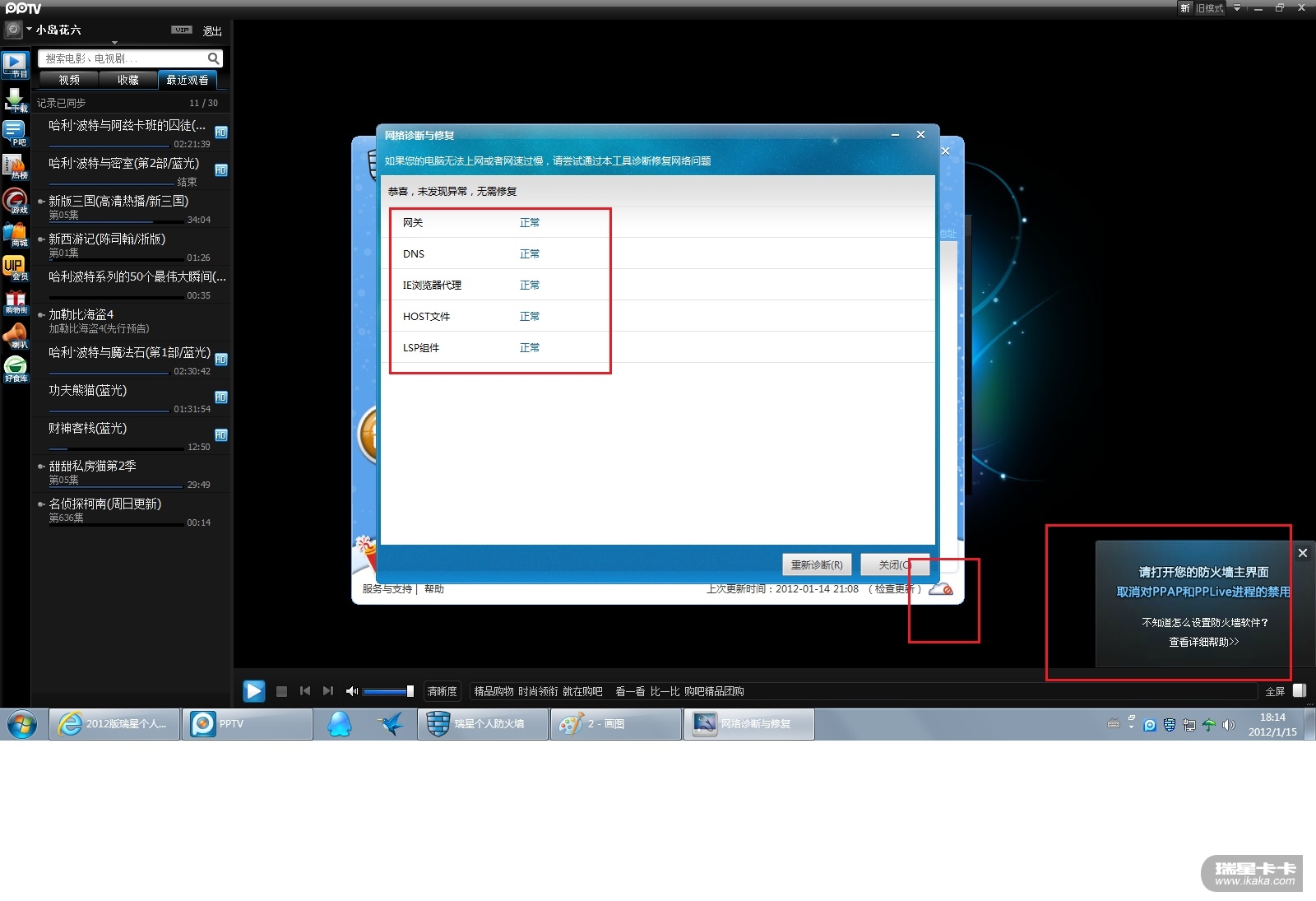 整个过程不做任何设置,关闭PPTV的提示窗口,照样可以看视频