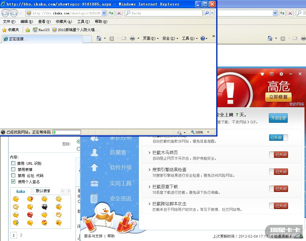电脑使用一段时间后瑞星防火墙造成无法上网页
