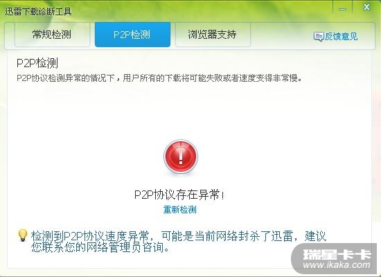 结果:迅雷下载速度异常,用迅雷检测 提示 上传异常 ,p2p协议 异常!!!
