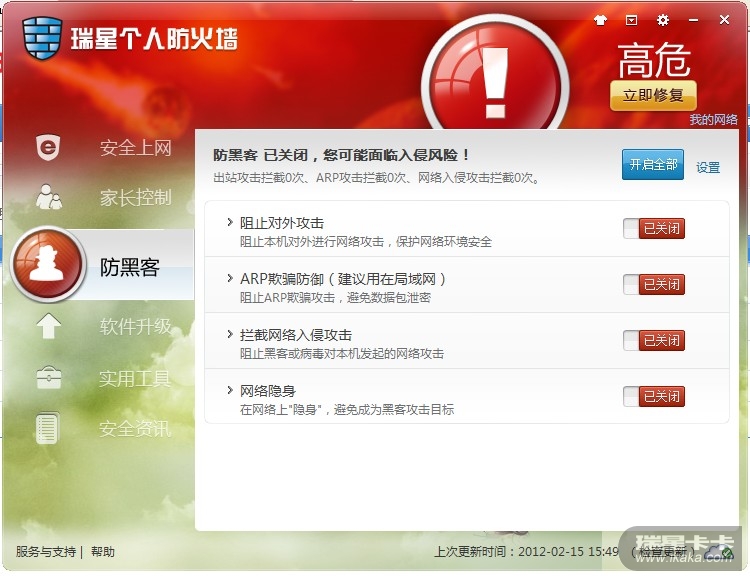 建议:在用户关闭掉防火墙部分功能或者是主要功能之后,防火墙变为橙盾或者是灰盾。以提醒用户目前防火墙部分功能没有开启