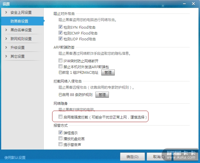 请楼主查看,网络隐身功能开启时,启用高强度拦截有没有勾选?