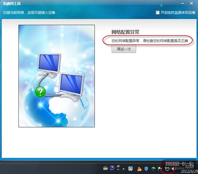 拨号后正常上网,但蹭网工具点开后显示配置异常