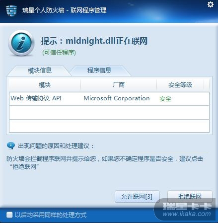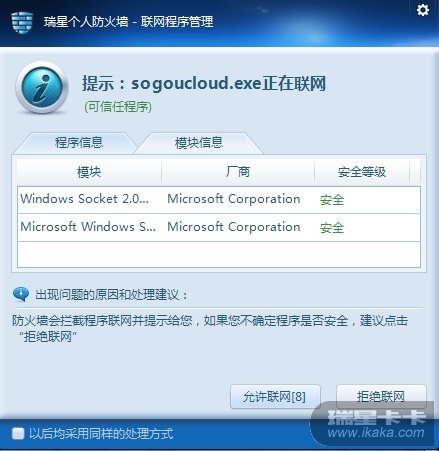结果:希望 防火墙检测到程序联网时 ,若程序和dll是 可信任的,在自动放行时不要弹窗拦截