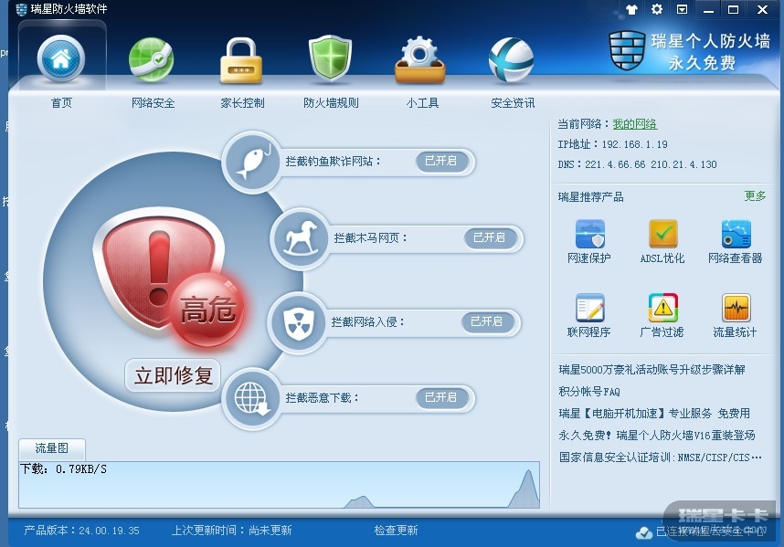安装瑞星防火墙[不应该显示高危,应该自动升级]建议