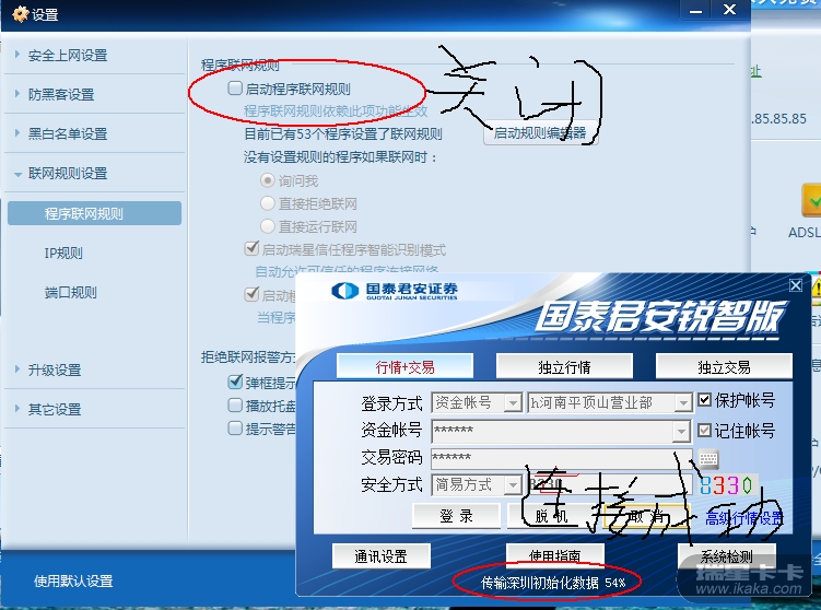 瑞星防火墙导致国泰君安股票交易软件无法正常登录!