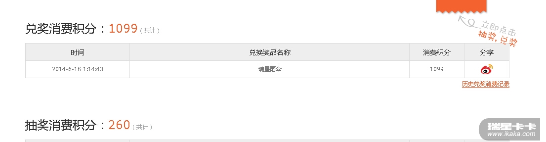 安装瑞星有几年了,积分我一般都拿来抽奖了,可惜运气真差啊,一次也没中。最后试着兑换一下伞,竟然成功了。