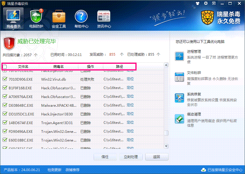 回复: 扫描时希望能滚动显示检测到的病毒列表
