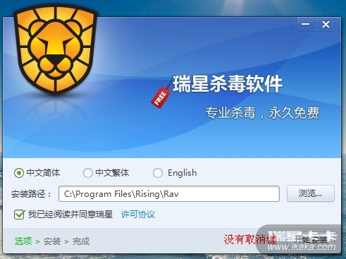 1.安装界面瑞星加入了动态设计和一键安装很不错!但有个问题就是安装首页没有取消安装选项如果用户不想安装只能用上面