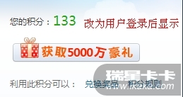 右上角的积分加入登陆选项的建议,这个会在将来实施瑞星统一身份登录, 并扩展VIP用户更多功能。