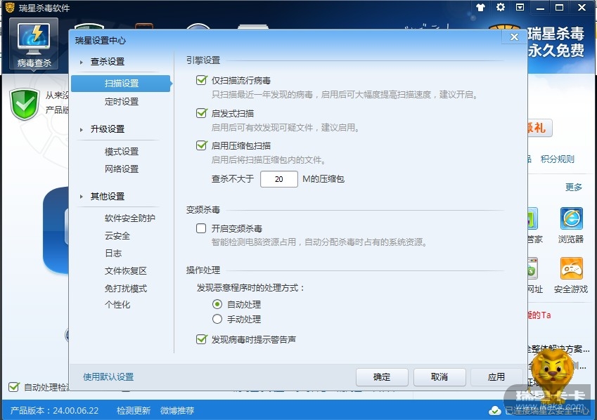在试用瑞星的时候,界面中的设置怎么没有白名单、黑名单和病毒查杀设置的选项。为什么要添加到界面当中去,难道是为了方便各位星迷朋友们设置方便?还是其它。总之,我觉得这样的设计思路有点凌乱。