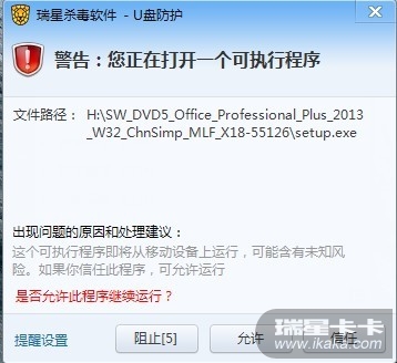 只是警告未报毒,U盘监控基本都是这个机制,运行.exe就会弹窗提示是否放行