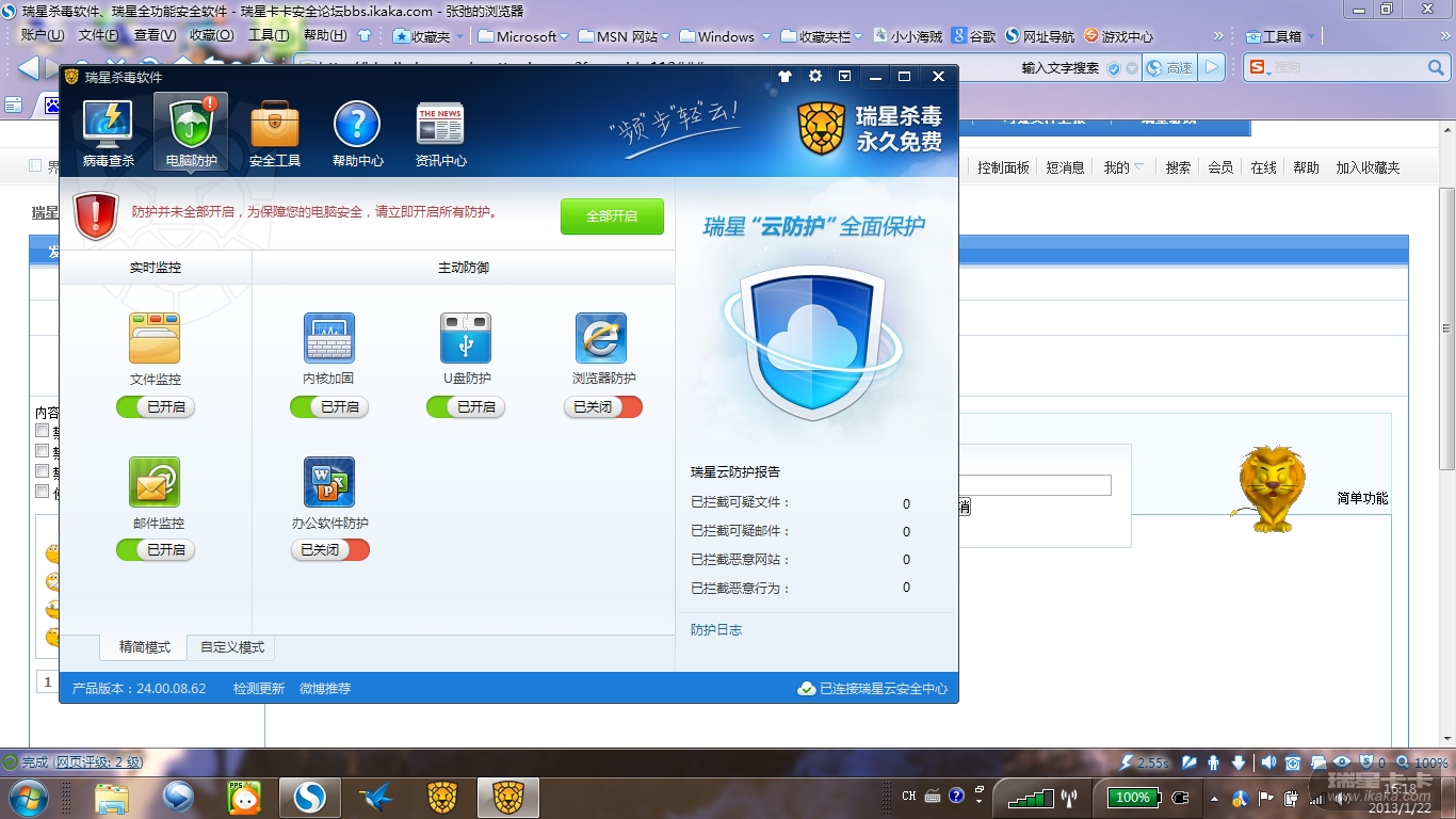 本主题由 在线技术支持工程师 瑞星工程师12 于 2013-1-23 8:58:27 执行 移动主题 操作
