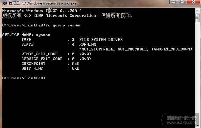 开始——运行——cmd,输入sc query sysmon,看看state显示什么?