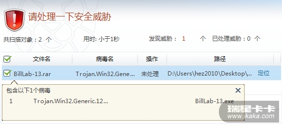 在网上随便下载一个软件安装包(此处以瑞星2011离线安装包为例),2011以前版本可以查杀得很具体,如可以查杀到此安装包中的每一个文件:risf.exe>>sfx>>......