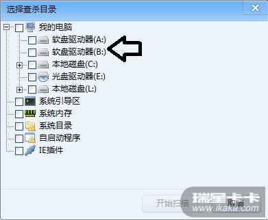 笔记本电脑根本没软驱,AB盘符就空下来了,于是用磁盘管理把DE分别改成了AB盘符,结果瑞星就不能识别为磁盘驱动器并进行扫描了。这个100%是设计失误了,不多说了,看图: