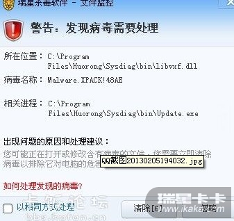 瑞星发现问题我删除,可源文件夹的DLl程序还在。。。。可奇怪的是,隔离区也有,我恢复隔离区至桌面。。。桌面的没毒。。源文件夹的那个有毒,,还是很奇怪。。。。。。刚才打算截图的,源文件夹的DLL扫描又安全了