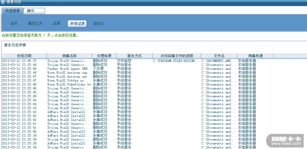 另外,隔离区和日志记录的一样详细,还有“选中被相同病毒感染的文件”“选中与已选中文件相同日期的文件”“选中与已选中文件相同路径的文件”三项功能