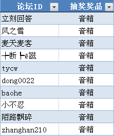 [其他问题] 抽奖活动获奖名单(奖品领取时间截至2013-10-1)