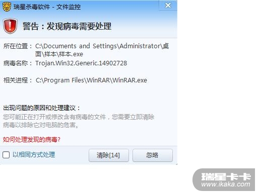 结果:为何样本在桌面上,瑞星监控不报警,扫描时才报警呢???